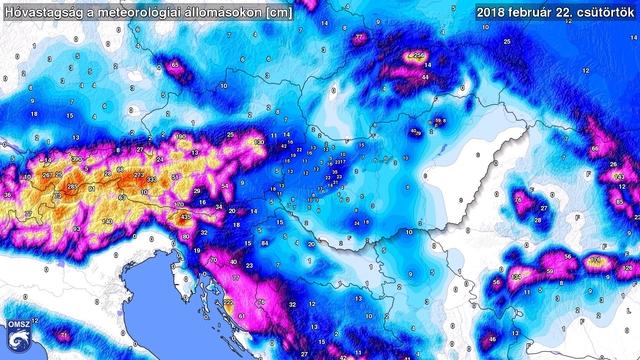 Február 22., csütörtök reggeli hóvastagság a meteorológia állomásokon...