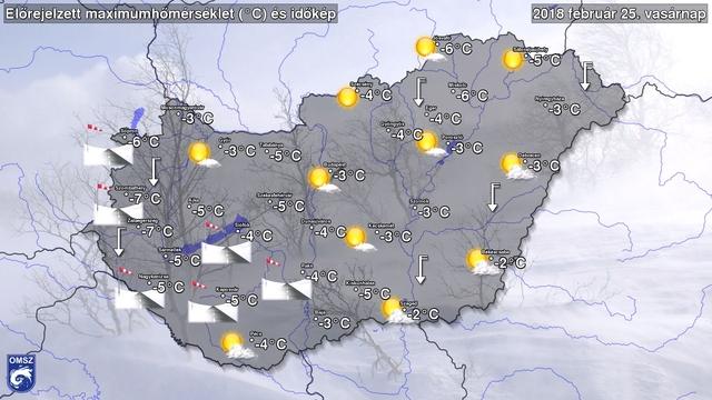 A legmagasabb nappali hőmérséklet -2 és -7 fok között várható.