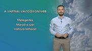 A gyenge hidegfront távozását követően a hét hátralévő részében is folytatódik az ilyenkor szokásosnál jóval enyhébb idő. A következő front várhatóan hétfőn érkezik. |