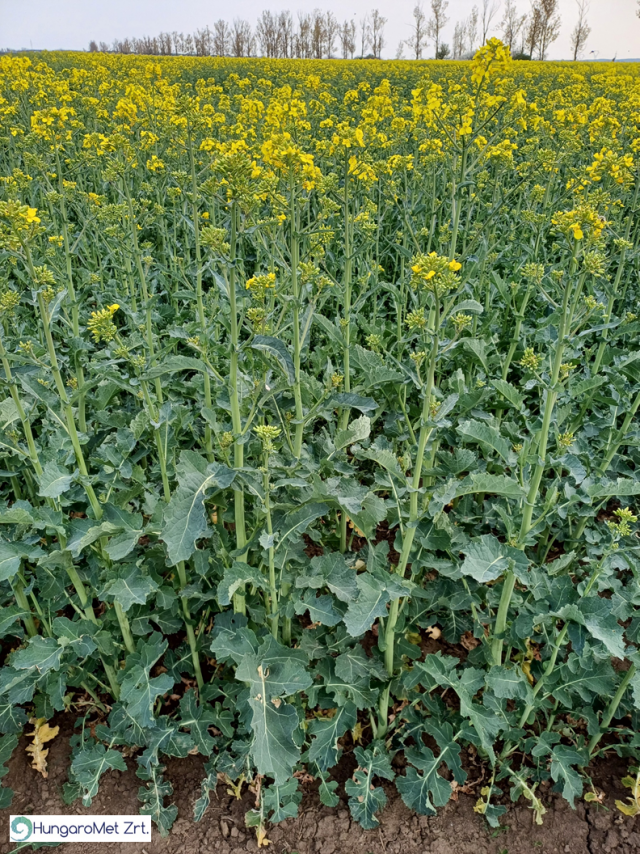 Az őszi búza vetések szépen növekednek (9. ábra), a szokásosnál előrébb járnak a fejlődésben, zöld tömegük intenzíven növekszik (10. ábra). A repce teljes virágzásban (11. ábra). Bár gyökérzónájukban még kielégítő mennyiségű nedvesség található, nagy szükség lenne a csapadékra.