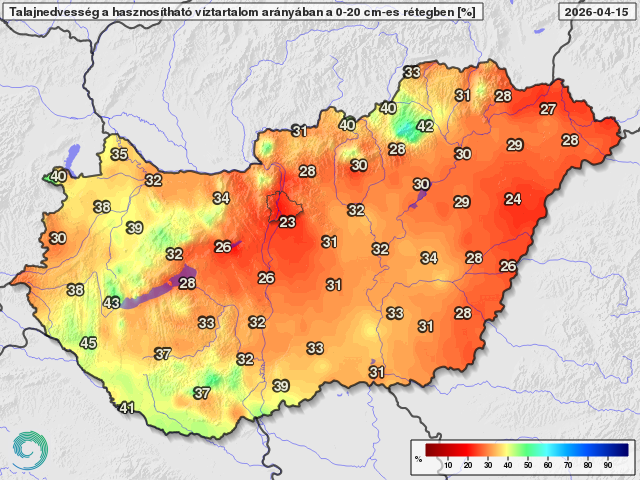 Talajnedvesség a talaj felső 20 centiméteres rétegében a növények számára hasznosítható vízmennyiség arányában