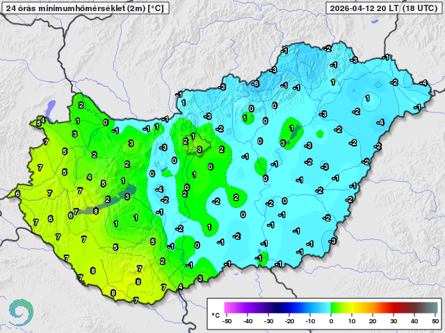 Minimum hőmérsékletek 2026. április 12-én (Celsius fok)