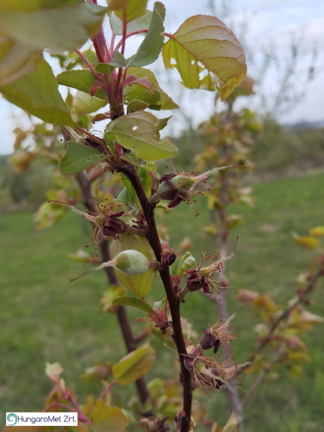 Szépen mutatkozó kajszi terméskezdemények Miskolc térségében 2026. április 15-én (fotó: Kovács Attila)