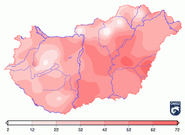 szintén hidegebb volt a megszokottnál (országos átlagban 1,2 fokkal), köszönhetõen a hónap második felében tapasztalható, átlagnál 5-7°C-kal hidegebb idõszaknak. Az átlagtól vett eltérések országon belül nem voltak jelentõsek: a legnagyobb negatív hõmérsékleti anomáliát, -1,7°C-ot a délkeleti országrészben regisztrálták, az átlaghoz képest legenyhébb értékeket pedig az Északi-középhegységben mérték, itt a normálnál 1,1°C-kal volt magasabb a havi átlaghõmérséklet.