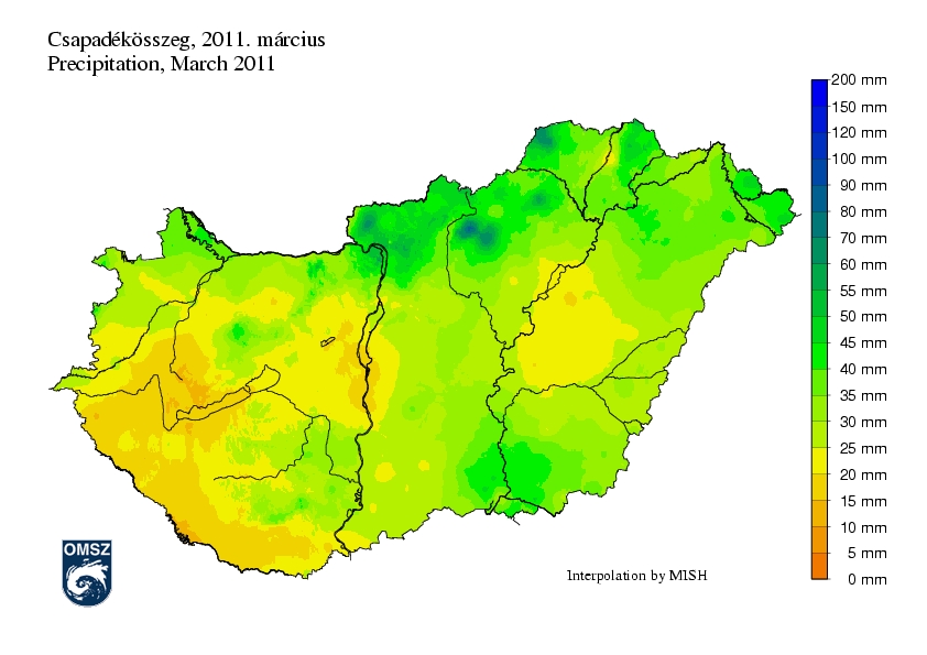Hazánk egész területén 10 mm-t meghaladó csapadék hullott, többnyire 20-40 mm közötti értékek jelentkeztek. A legszárazabb terület a Dunántúl nyugat-délnyugati része volt, míg a legcsapadékosabbnak 60 mm-t meghaladó összegekkel a Mátra térsége bizonyult.