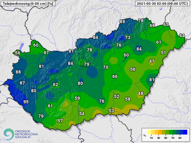 a talaj felső 50 centiméteres rétegében 2021.május 30-án (%)