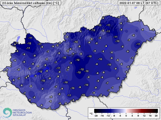 24 órás hőmérséklet változás 2022. január 7-én 8 óráig (Celsius fok)