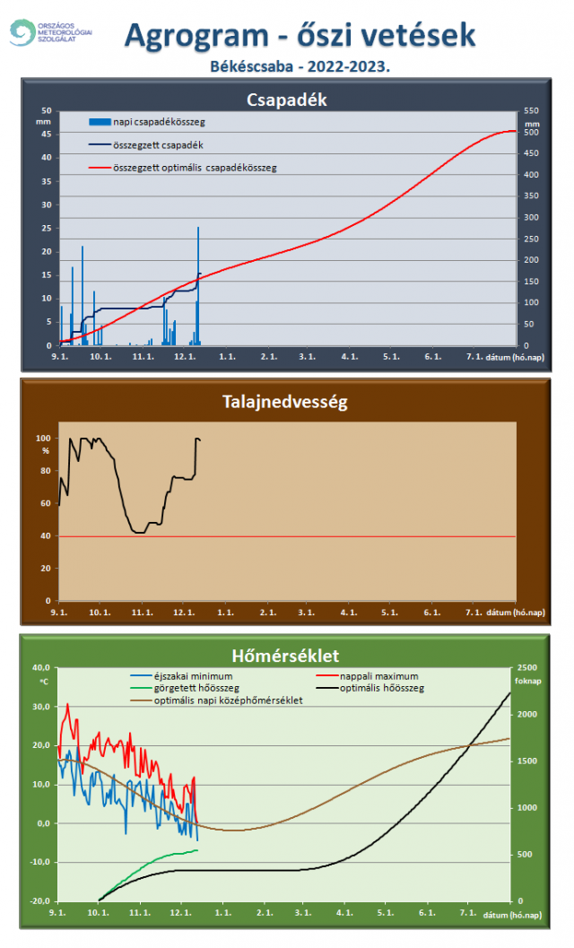 Őszi vetésekre vonatkozó agrogram Békéscsaba térségére 2022. december 13-ig