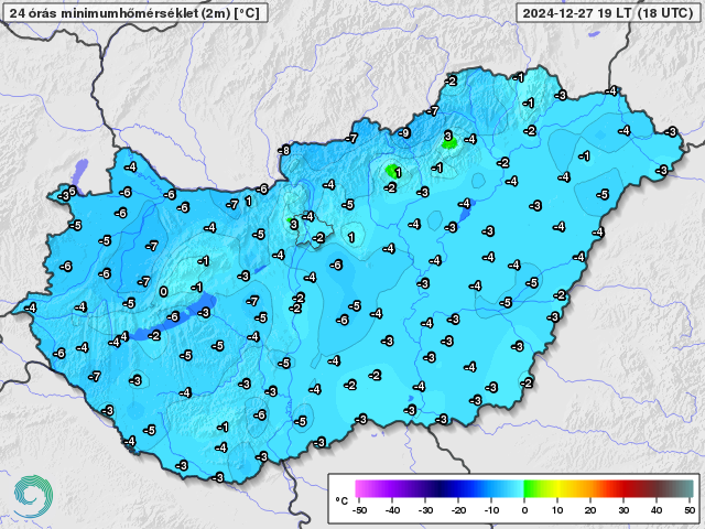 Minimum hőmérsékletek 2024. december 27-én (Celsius fok)