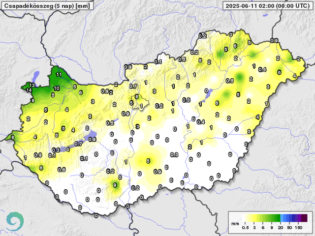 5 napos csapadékösszeg 2025. június 11-ig (mm)