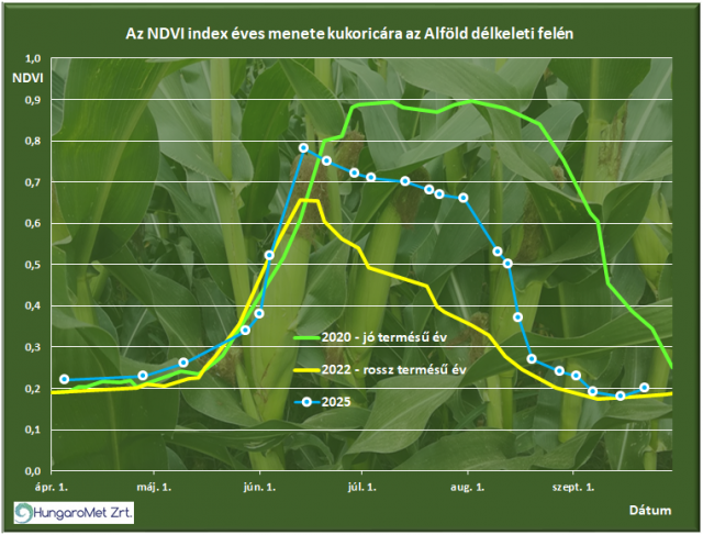Kukoricára vonatkozó agrogram Békéscsaba térségére 2025. szeptember 28-ig