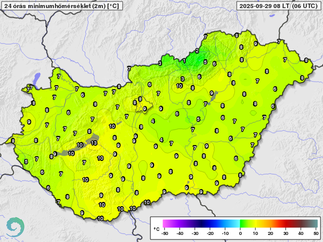 Minimum hőmérsékletek 2025. szeptember 28-án (Celsius fok)
