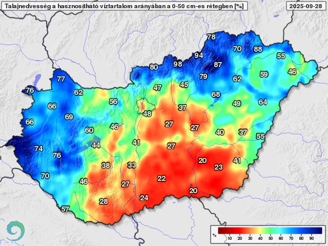 Talajnedvesség a talaj felső fél méteres rétegében a növények számára hasznosítható vízmennyiség arányában