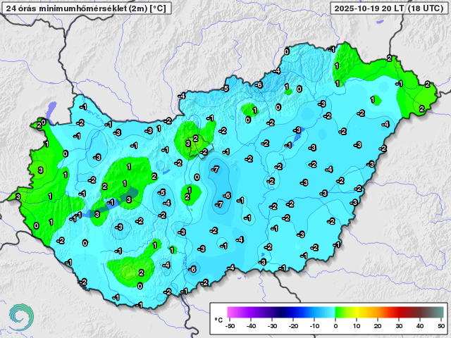 Minimum hőmérsékletek 2025. október 19-én (Celsius fok)