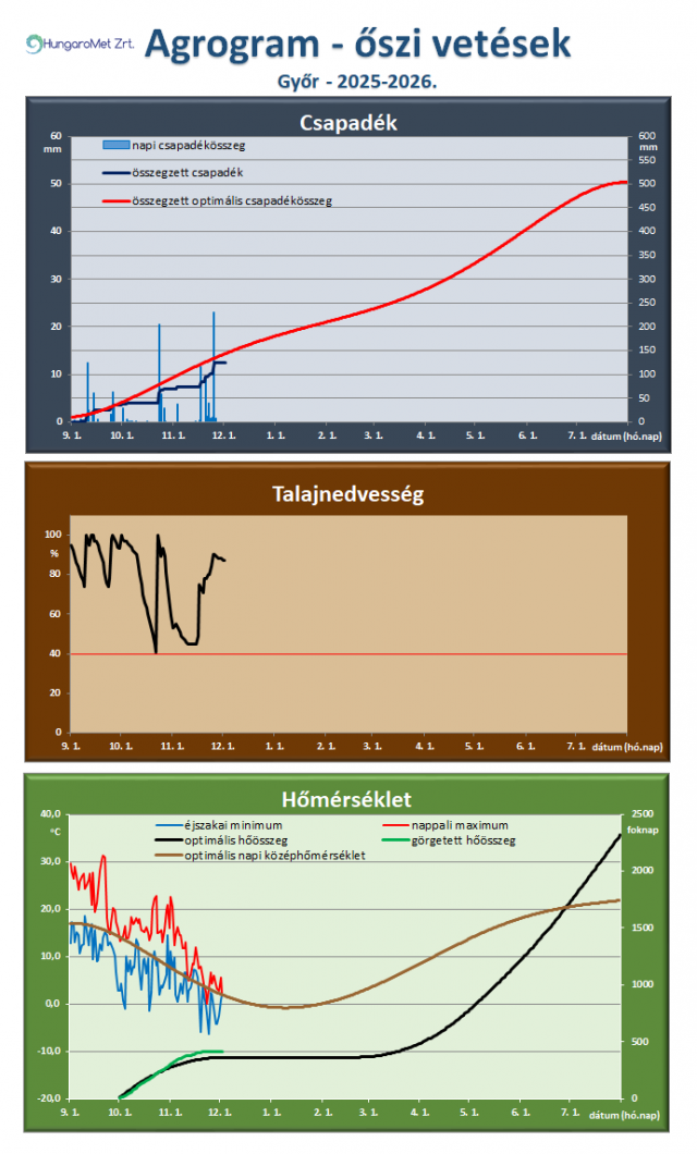 Őszi kalászosokra vonatkozó agrogram Győr térségére 2025. december 2-ig (részletes magyarázat a szövegben)