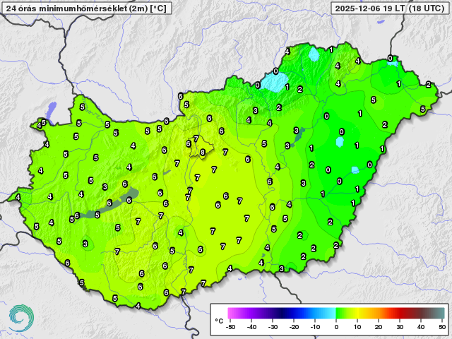 Minimum hőmérsékletek 2025. december 6-án (Celsius fok)