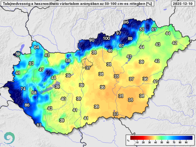 Talajnedvesség a talaj 50-100 centiméteres rétegében a növények számára hasznosítható vízmennyiség arányában
