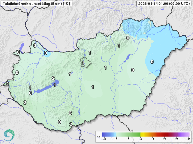 5 cm-en mért talajhőmérséklet napi átlaga 2026. január 14-én (Celsius fok)