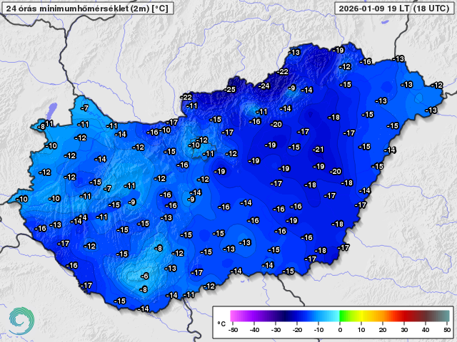 Minimum hőmérsékletek 2025. január 9-én (Celsius fok)