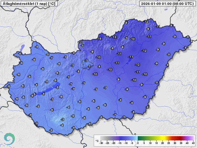 Napi középhőmérséklet 2026. január 9-én (Celsius fok)