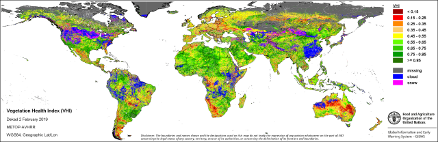 VHI Index 2019. február második dekádjára (forrás: www.fao.org)