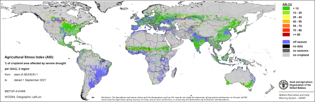 ASI Index mezőgazdasági kultúrákra 2021. szeptember első dekádjában (forrás: www.fao.org)