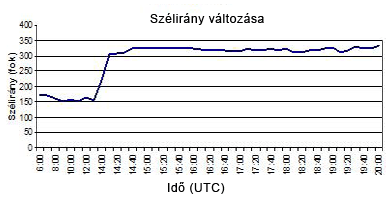 majd a talajfront érkezését hirtelen szélfordulás és szélerősödés és jelentős hőmérséklet-csökkenés kísérte (1. ábra a-d).