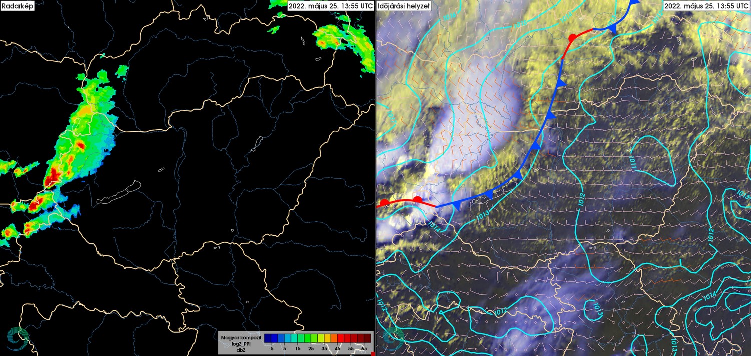 2022. május 25-én 19 órakor a zivatarrendszer Kaposvár-Kiskunhalas vonalban található;