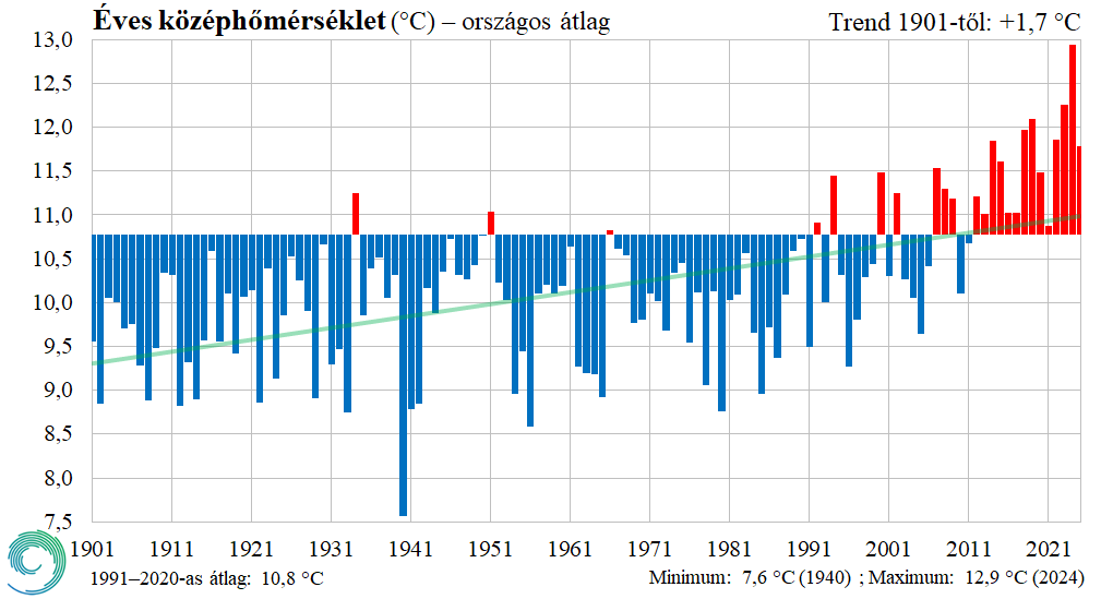 Legmelegebb évek Magyarországon országos átlagban 1901 óta