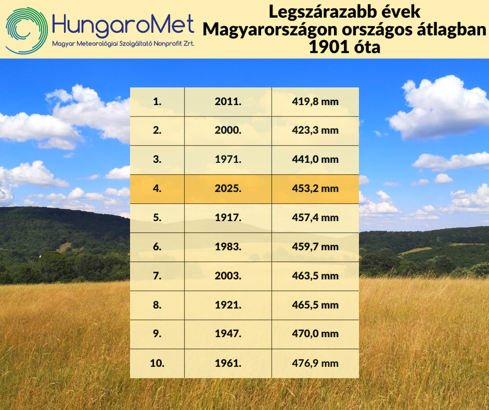 Legszárazabb évek Magyarországon országos átlagban 1901 óta