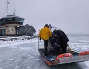A Vizimentők Magyarországi Szakszolgálatának mocsárjárója a Balaton közepén 2026. január 21-én