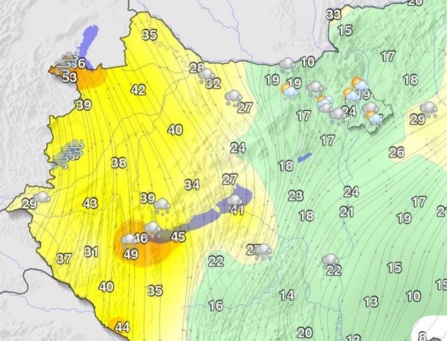 MET-ÉSZ térkép hófúvás jelentésekkel, aktuális szélmezővel