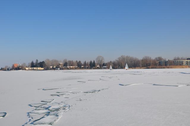 Jégvitorlások partközelben, a kép bal szélén az Obszervatórium tornya is kivehető