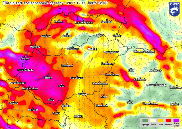 (ECMWF 2017.12.11. 12 UTC - 13 óra)