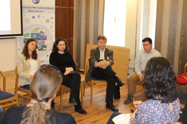 A rendezvény első felében szakmai előadások hangzottak el. Zsebeházi Gabriella (a projekt koordinátora) előadásában a klímamodellek hatásvizsgálatokban való alkalmazásának néhány kihívását és azok lehetséges megoldásait, ajánlásait ismertette. A klímamodelleredmények bizonytalanságai többféle forrásból származnak (például a modellek különbözősége, az emberi tevékenység bizonytalan jövőbeli alakulása), melyek eltérő módon járulnak hozzá a teljes bizonytalansághoz különböző időszakokat és változókat vizsgálva. Emiatt a különböző hatásvizsgálatokhoz meteorológiai adatokat szolgáltató modellszimuláció-együttes összeállítása körültekintést, előzetes vizsgálatokat igényel. Ezt követően a magyarországi jövőbeli nyári csapadékváltozás példáján bemutattuk, hogy a modellek fejlesztésével és új modellszimuláció-családok kialakításával a korábban megismert éghajlatváltozási jellemzők módosulhatnak (az új eredmények a korábbinál jóval kisebb valószínűséggel jelzik a nyári csapadék csökkenését), ami különösen indokolja a hatásvizsgálatok újbóli elvégzését az újabb éghajlati modelleredmények megjelenésével párhuzamosan. Végezetül áttekintettük a szimulációk térbeli és időbeli finomításának lehetőségeit és a városklíma-modellezés példáján bemutattuk a komplex felszínek felett a klímamodelleknél részletesebb, ugyanakkor fizikai törvényeken alapuló felszíni modellek alkalmazhatóságát.
