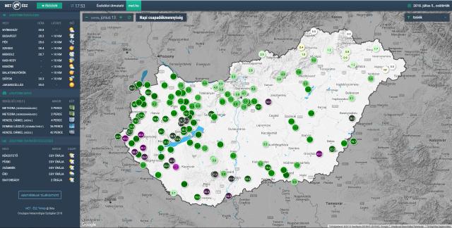 A MET-ÉSZ rendszerben sikeresen rögzített, szakmailag helyes adatokat, képeket, szöveges megjegyzéseket az OMSZ honlapjának MET-ÉSZ adatok oldalán lehet megtekinteni. Újdonságképpen a MET-ÉSZ adatok térképes megjelenítése új, felhasználóbarát oldallal bővült. Az új oldal könnyen nagyítható térképén automatikusan frissülve jelennek meg a legutóbbi észlelések. Többféle szűrő, illetve az időválasztó segítségével könnyedén kiválaszthatók a keresett észlelések. A weblap bal oldalán vannak kigyűjtve a legutóbbi észlelések, illetve a beküldött időjárás-fotók. |