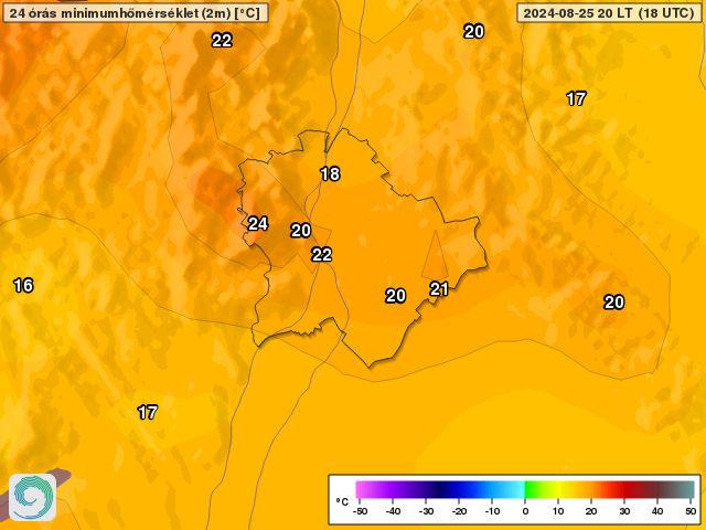 Augusztus 25-én ismét megdőlt a fővárosi napi legmagasabb minimumhőmérsékleti rekord. A tegnapi naphoz hasonlóan ugyanúgy Budapest János-hegy állomás vette át a rekordtartó szerepét 23,5 fokkalBudapest Lágymányos állomásától. Lágymányoson 2019-ben mértek 23,2 fokot, ami egészen mai napig volt a legmagasabb minimumhőmérséklet a fővárosban ezen a napon.