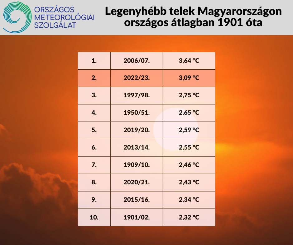 A tíz legenyhébb tél Magyarországon országos átlagban 1901 óta